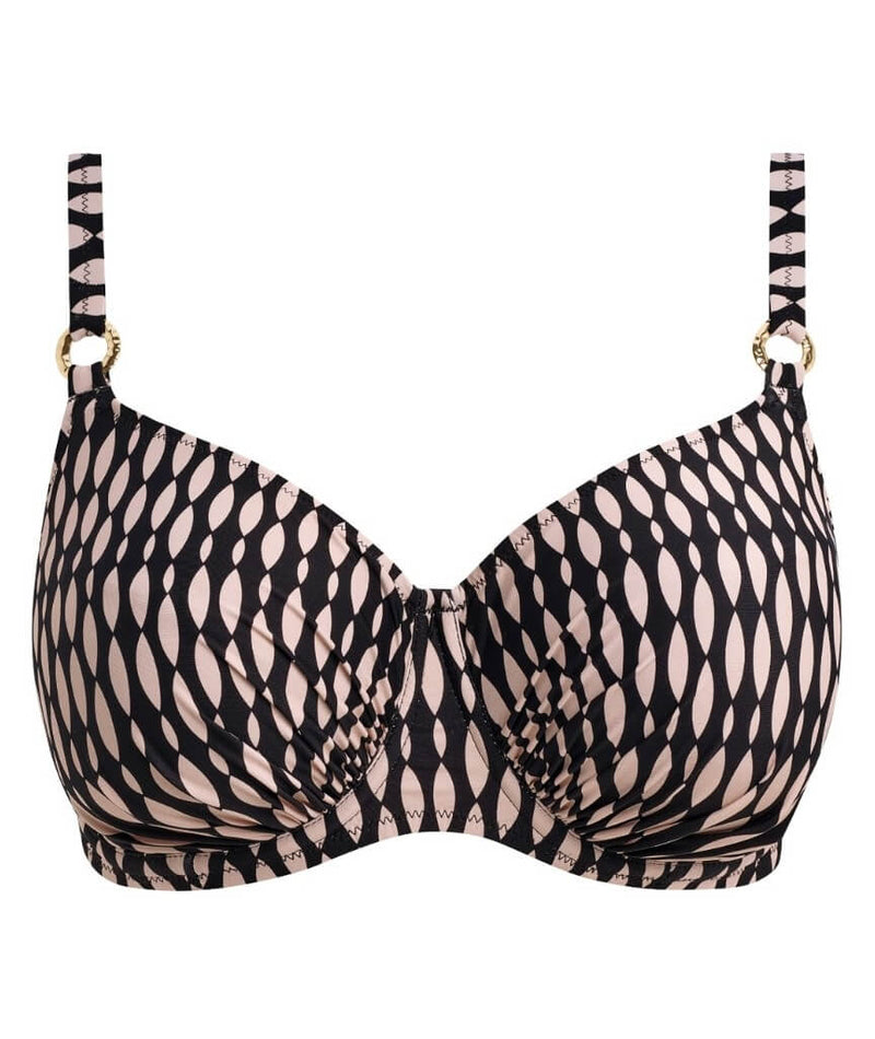 Feel supported and sun-ready with Shell Bay. Featuring a graphic design, in a black and muted blush pairing, for an elevated pool side look. Subtle design details complete this collection with its hammered effect gold ring detailing. For swimwear that feels as good as it looks – choose Fantasie Swim.