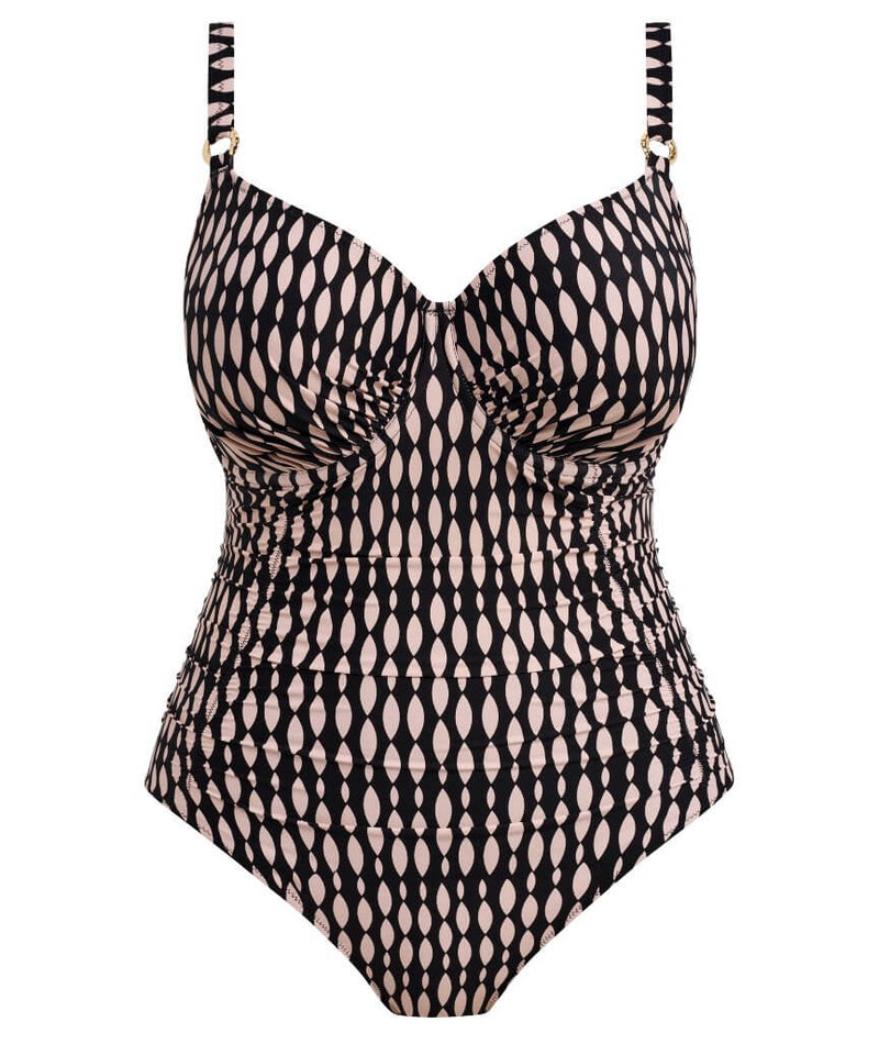 Feel supported and sun-ready with Shell Bay. Featuring a graphic design, in a black and muted blush pairing, for an elevated pool side look. Subtle design details complete this collection with its hammered effect gold ring detailing. For swimwear that feels as good as it looks – choose Fantasie Swim.
