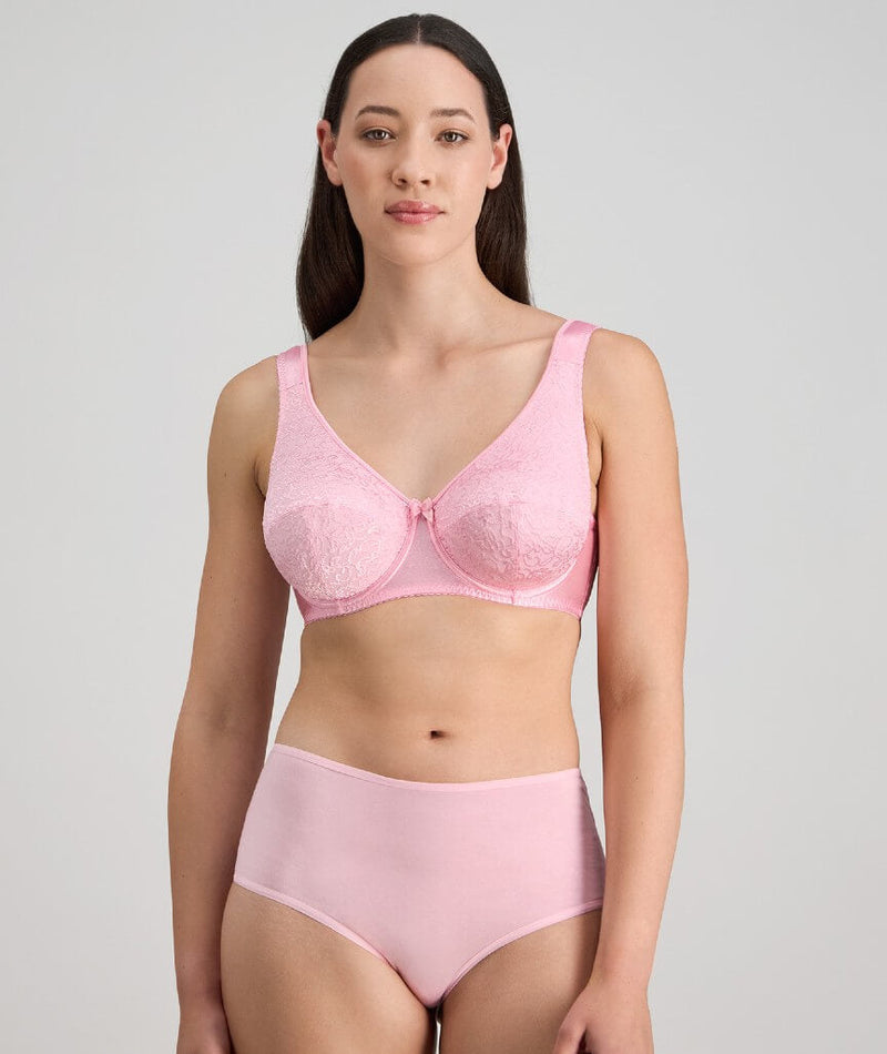 Comfort meets full coverage with the Charlotte Underwire Bra. Coming in a pretty Pink shade, this lacy, feminine number will keep you happy all day.